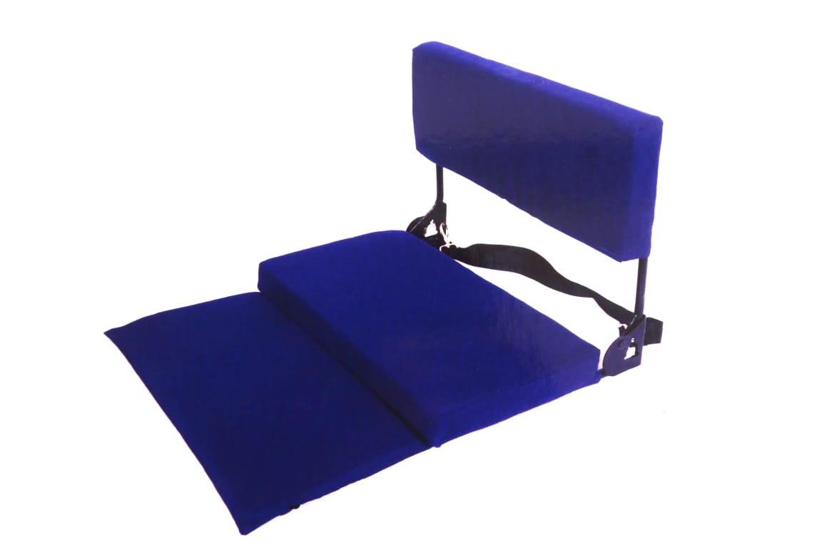 Experience comfort with the TSK Meditation Chair. Fully foldable, 20x18x3 inch seat, back support, extra cushion, and a carry bag. Perfect for sukhasana. 7-year warranty included.